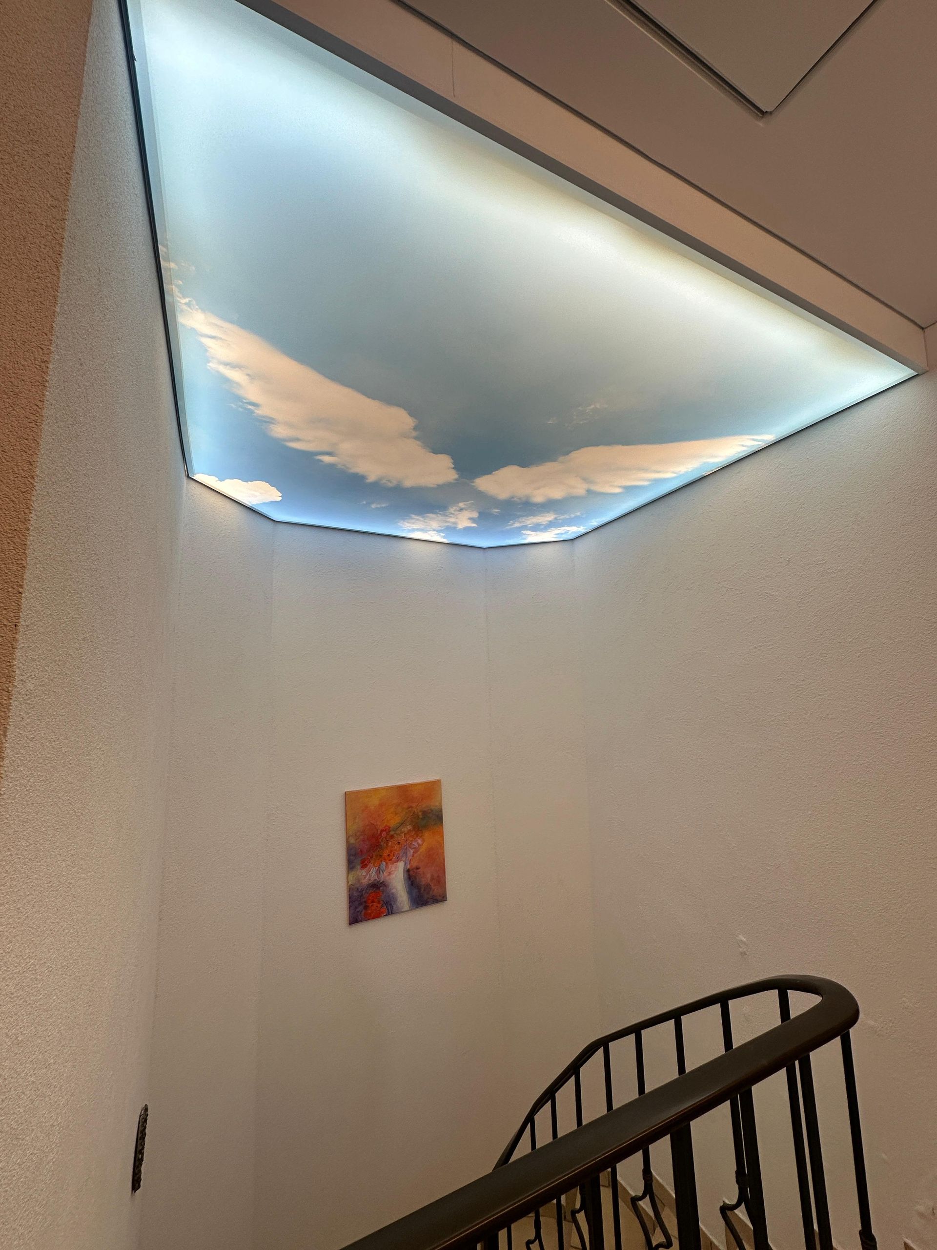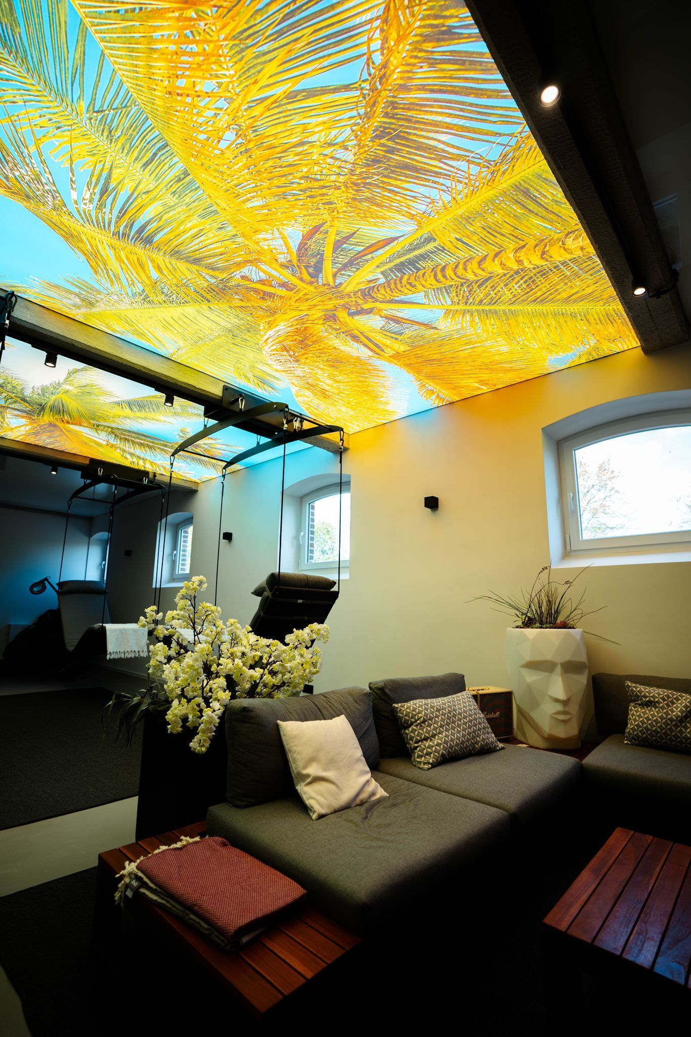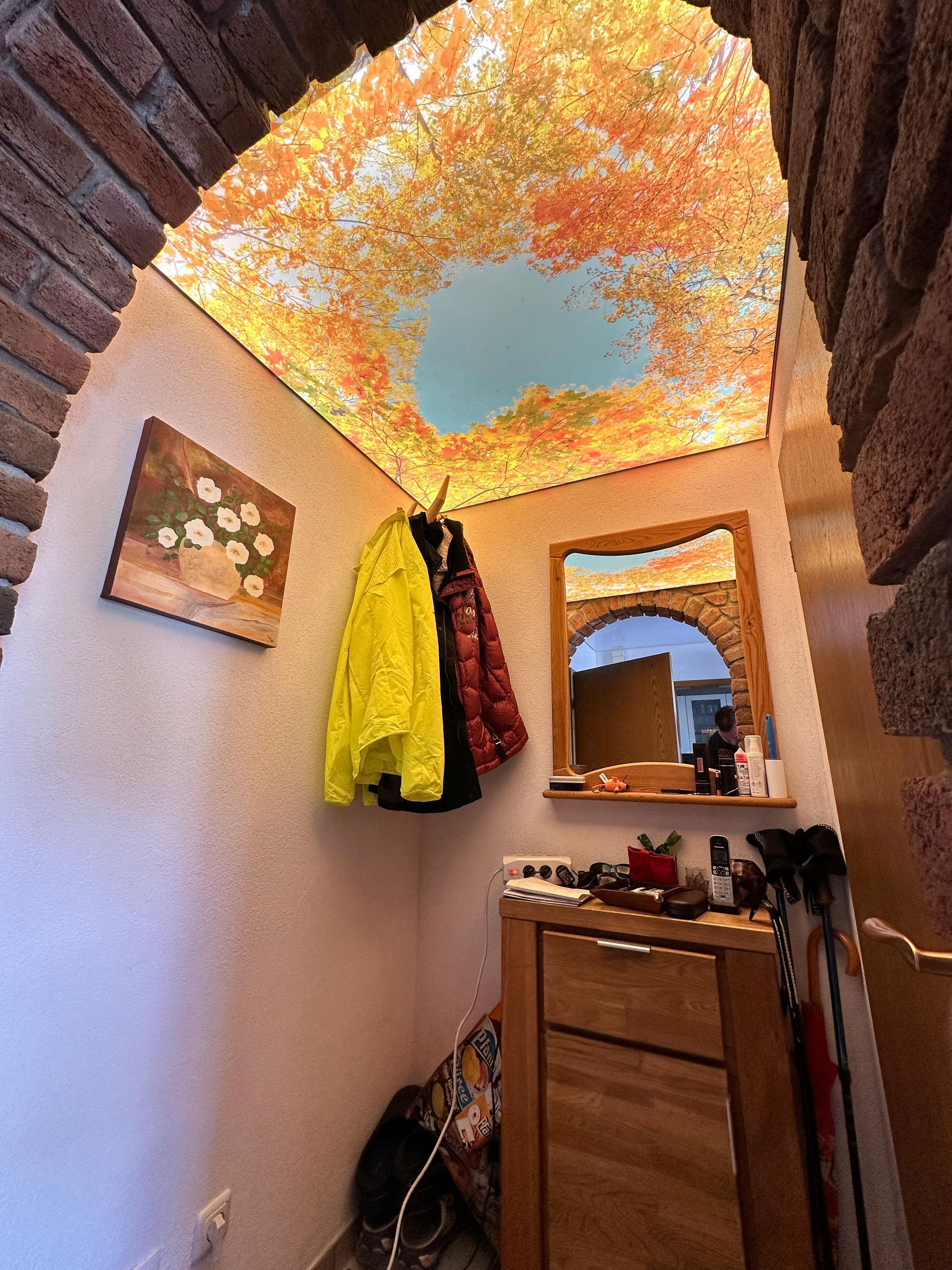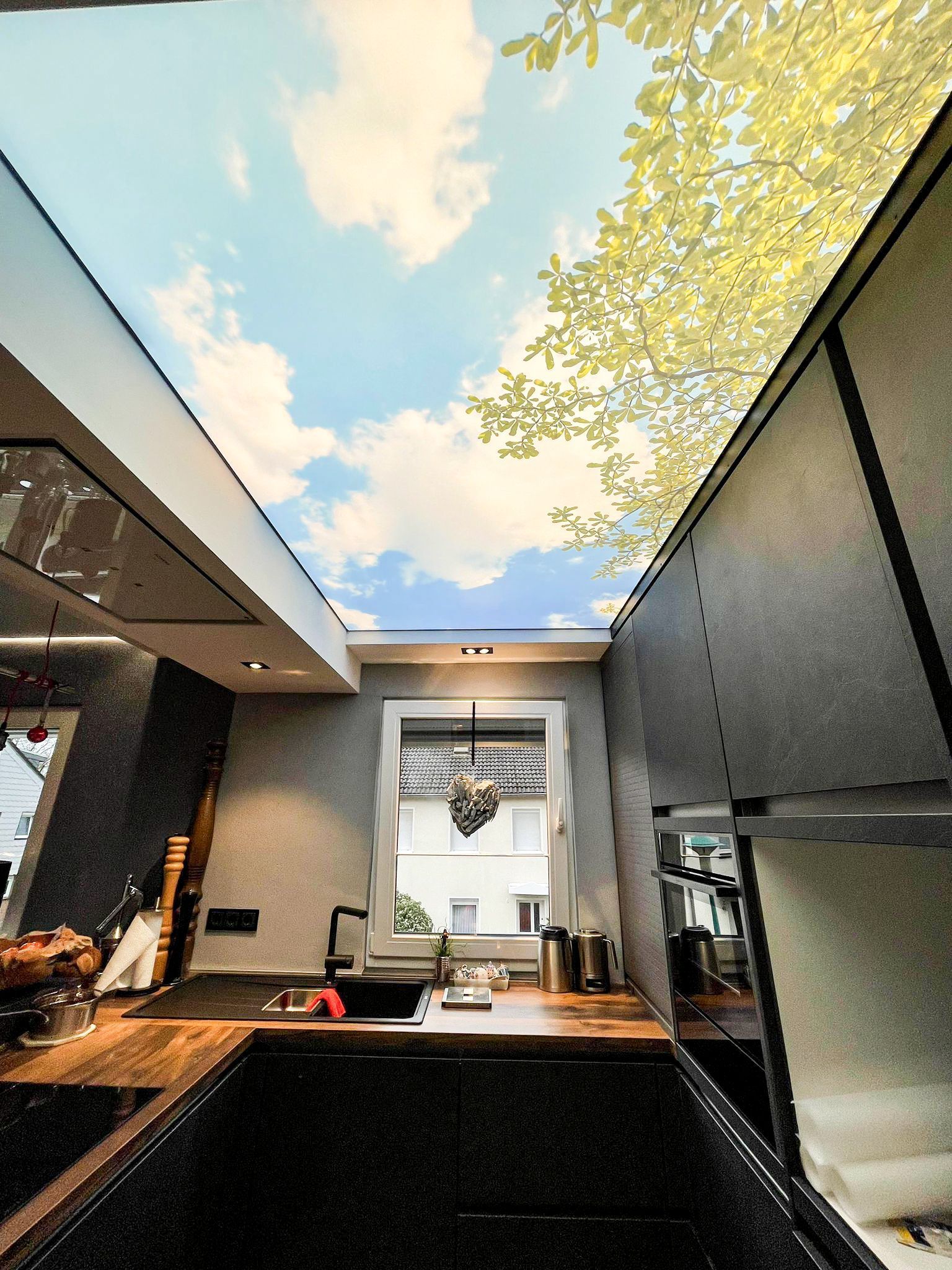 Eine bedruckte Spanndecke ermöglicht es, den Raum mit individuellen Designs, Mustern oder Bildern zu gestalten und ihm eine persönliche Note zu verleihen. Sie bietet eine große Auswahl an kreativen Möglichkeiten, um den Raum zu verschönern und ihm eine einzigartige Atmosphäre zu verleihen. Die bedruckte Oberfläche ist zudem langlebig und pflegeleicht, da sie mit speziellen Druckverfahren hergestellt wird, die eine hohe Qualität und Beständigkeit gewährleisten.